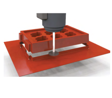 The vacuum forming is placed on a vacuum jig on the bed of the machine as the router head machines all the apertures, slots and removes the waste material. This method will cut most materials. Leaves a very clean accurate edge that often does not require additional cleaning.